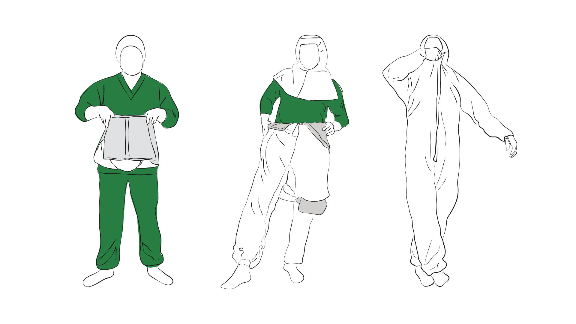 - 1 set (hood/coverall/boots) per sealed inner bag