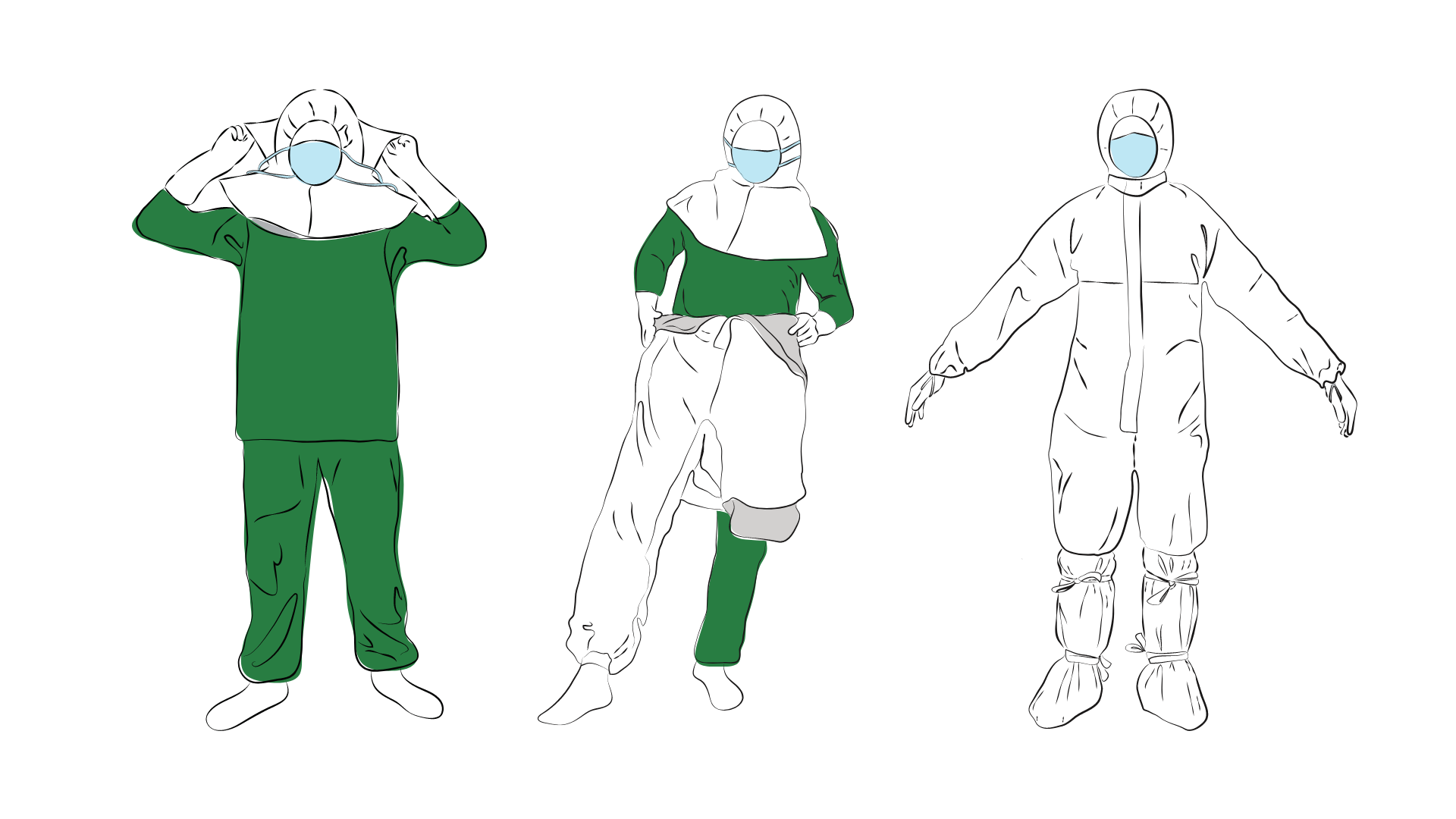 - Integrated mask with ties for quick and easy donning